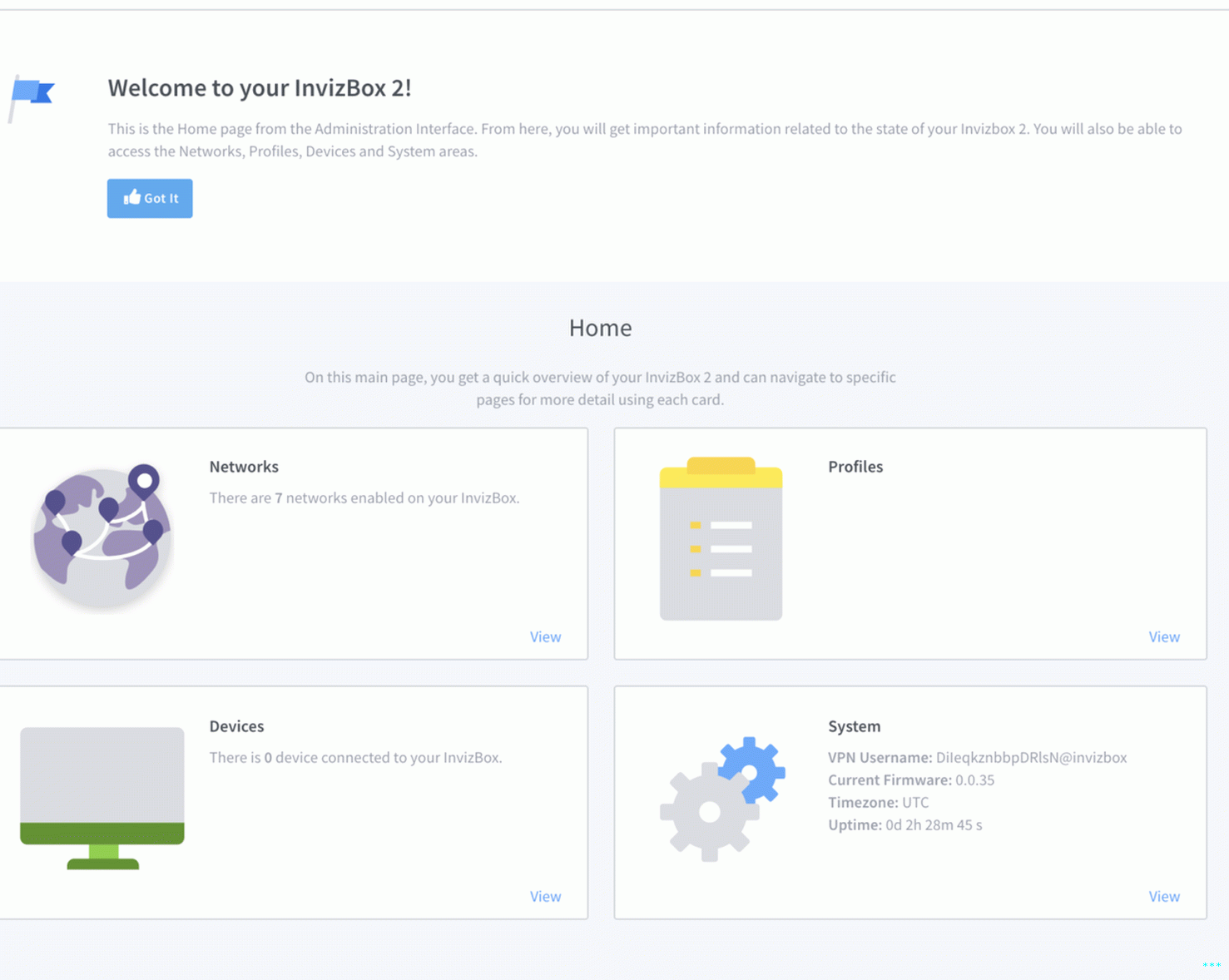 Существует несколько вариантов использования VPN с InvizBox 2. Вы можете заказать версию для одного из поддерживаемых InvizBox VPN (Windscribe, IPVanish, PrivateInternetAccess, NordVPN или ExpressVPN) или с настроенной собственной службой VPN InvizBox (с ежемесячная оплата или с предоплатой за один или два года, со значительным скидки). VPN InvizBox основан на OpenVPN, что означает, что вы можете также используйте его на мобильном устройстве или компьютере, находясь вдали от дома сеть.
