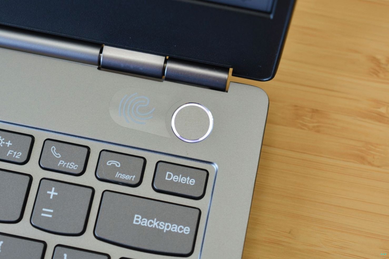 Считыватель отпечатков пальцев обеспечивает дополнительный уровень безопасности ну, и он встроен в кнопку питания, которая находится на верхняя правая часть области клавиатуры. Кнопка окружена светящееся кольцо света, которое придает ему более совершенный вид, а также давая вам знать, куда именно должен идти ваш палец, когда вы пытаясь войти с помощью биометрии. Комбинация кнопки считывателя также поддерживает питание одним касанием и вход в систему, поэтому одним нажатием кнопки питания кнопка с нужным пальцем включит устройство и подпишет в течение нескольких секунд.
