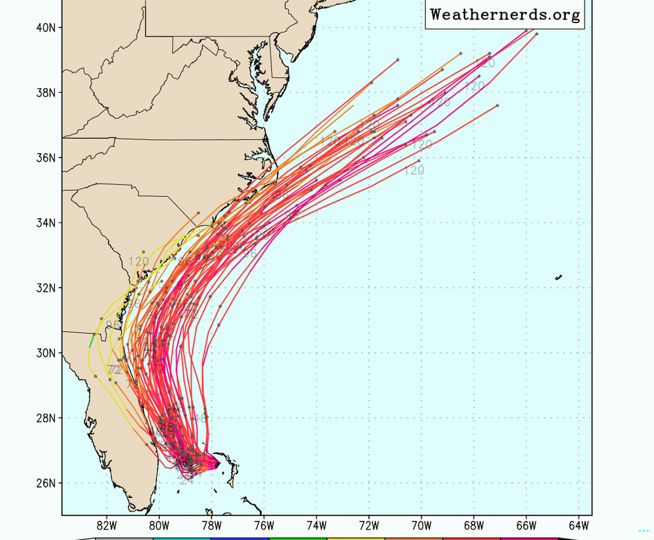 А вот и дорожки модели 00z для Дориана в Европе ансамблевый прогноз. Weathernerds.org
