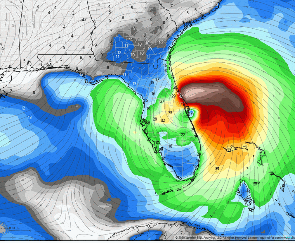 Еще одной тенденцией в течение ночных часов была конвергенция моделей глобального прогноза, а также моделей ураганов такие как HWRF и HMON, все из которых приближают Дориана к побережье Флориды – возможно, где-то недалеко от Мельбурна, Титусвилл и Космический центр Кеннеди.