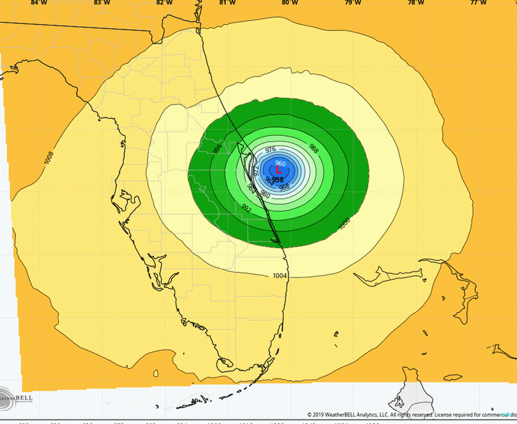 Это позиция модели HWRF на 5 утра по восточному времени в среду. Погода колокол