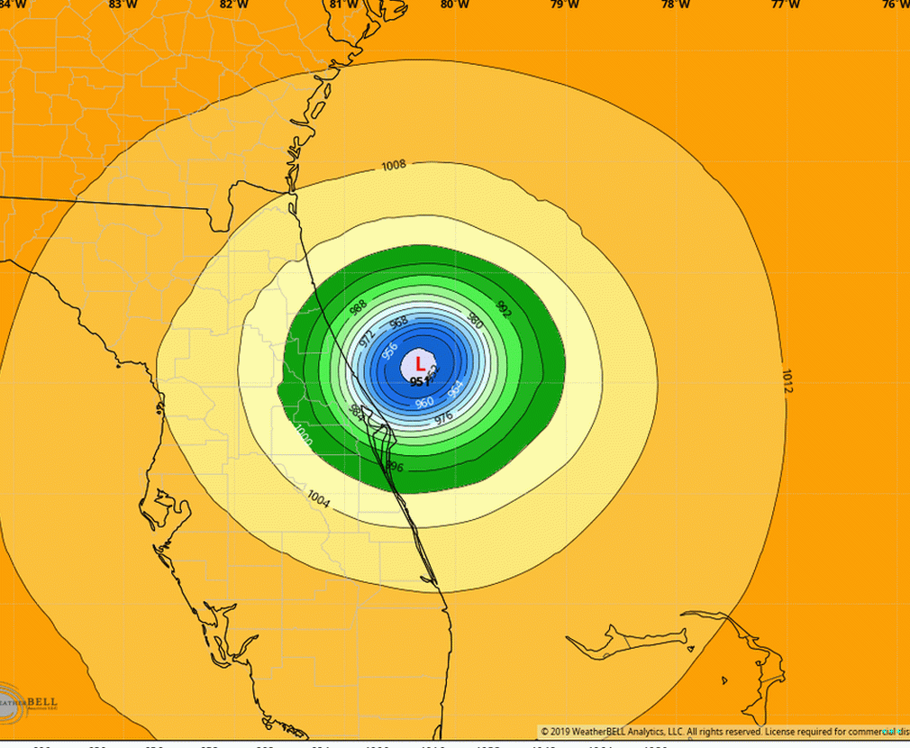 Вот прогноз модели GFS для позиции Дориана на 11 вечера по восточному времени Вторник. Погода Белл